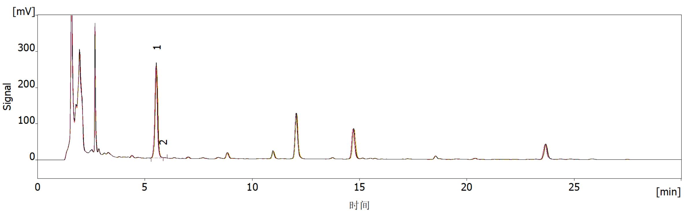 流動(dòng)相A-乙腈,流動(dòng)相B-0.2%甲酸,梯度洗脫