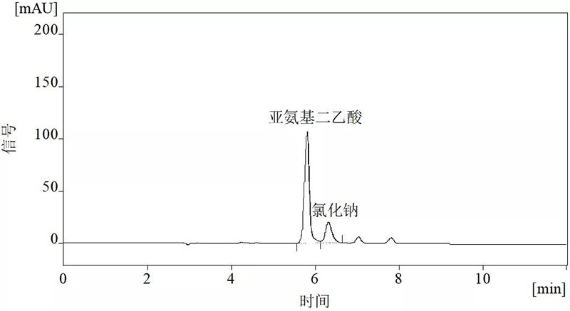 樣品溶液中亞氨基二乙酸及氯化鈉分析色譜圖