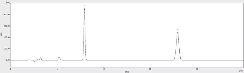 使用EClassical 3200高效液相色譜儀配Supersil ODS2色譜柱分析吡嘧?莎稗磷乳油樣品,峰形良好,柱效高,且兩個主峰分離度非常好,滿足定性定量分析的需求。