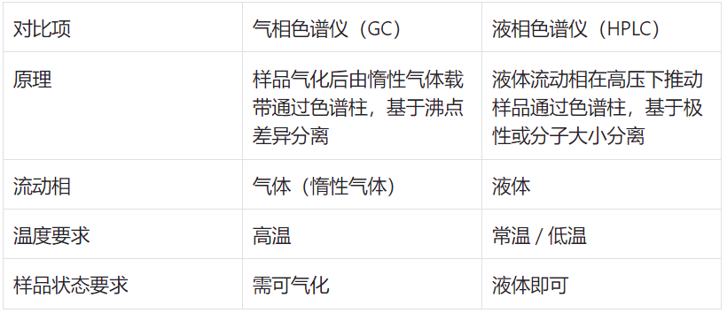 兩者在一些基本要素上是相通的,像保留值、塔板數(shù)、塔板高度、分離度、選擇性等;基礎(chǔ)理論方面,塔板理論與速率方程也大致相同。不過,氣相色譜儀用氣體作為流動(dòng)相,液相色譜儀則用液體作為流動(dòng)相,而液體和氣體的特性存在差異,再加上兩者使用的實(shí)驗(yàn)儀器和操作條件也不一樣,所以它們之間存在不少區(qū)別,主要體現(xiàn)在以下幾個(gè)方面: