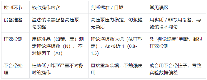 表 3:裝柱質(zhì)量控制關鍵步驟表