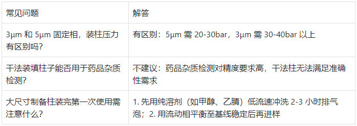 Q1:3μm 和 5μm 固定相,裝柱壓力一樣嗎?