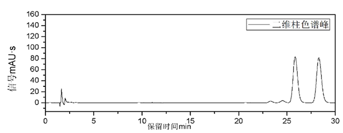 2D-LC的一維中僅出現(xiàn)一個(gè)VD峰,表明VD2 與VD3并沒有被分開;而在二維中,VD2和VD3的色譜峰有著良好的基線分離。