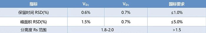 2、保留時(shí)間與峰面積 RSD 均低于國標(biāo)限值,重復(fù)性穩(wěn)定。