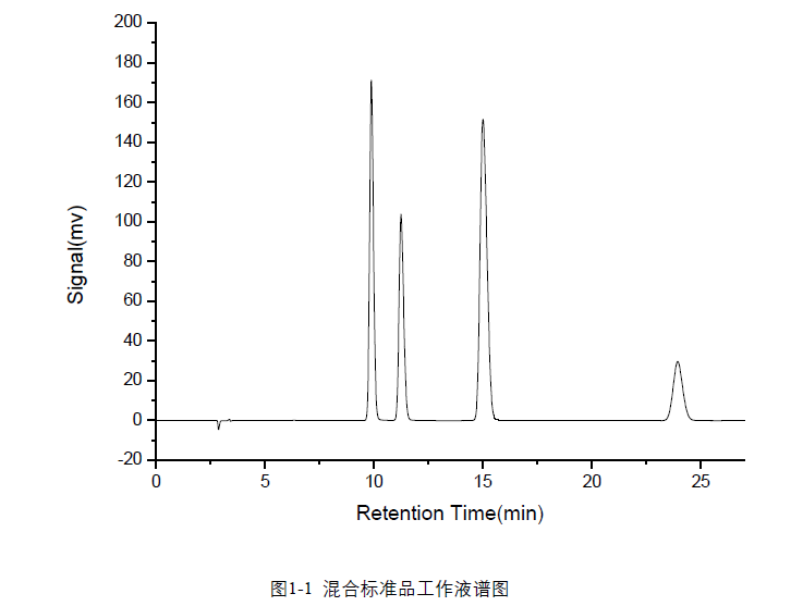 進樣分析濃度為10.0μg/mL混合標準品工作液,使用上述色譜條件,結果如下圖所示。