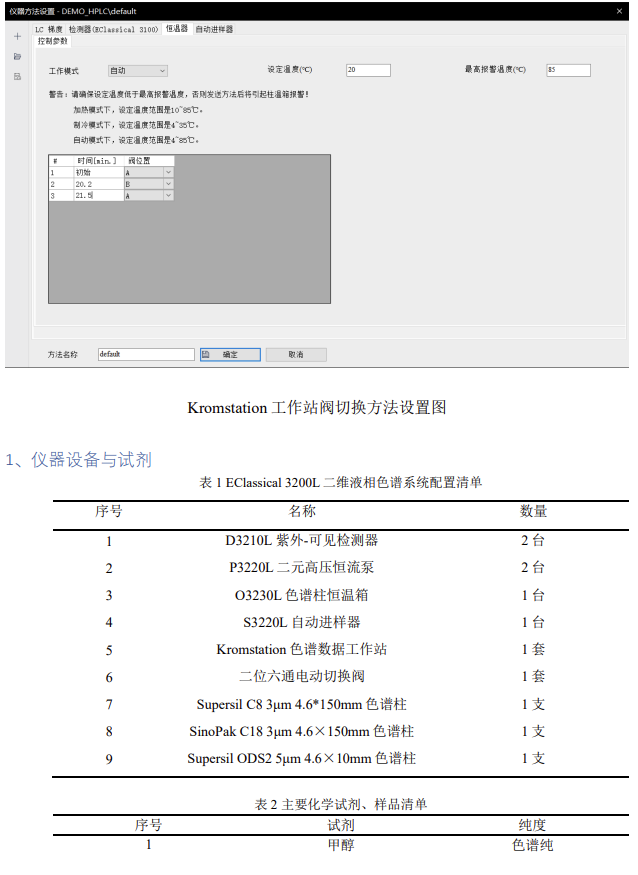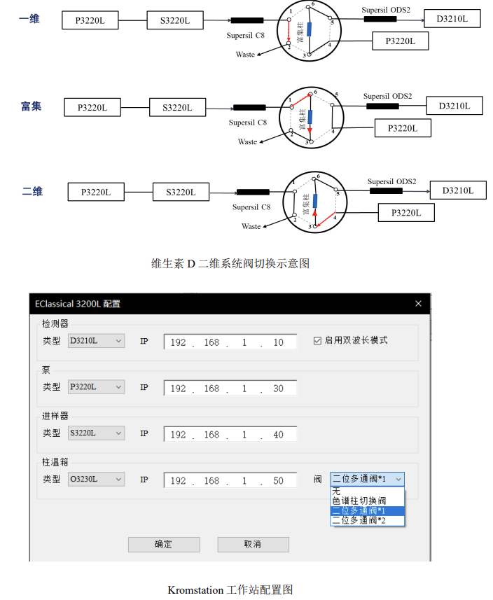 根據(jù)以上實驗數(shù)據(jù),Kromstation 色譜數(shù)據(jù)工作站可以實現(xiàn)對 EClassical 3200L 二維系統(tǒng)的全反控。根據(jù) GB 5009.296-2023《食品安全國家標準 食品中維生素 D 的測定》第二法:在線柱切換 - 反相液相色譜法(二維液相色譜法)分離維生素D_2、D_3,Kromstation 色譜數(shù)據(jù)工作站可以自動實現(xiàn)二維系統(tǒng)的閥切換完成維生素D_2、D_3的分離,且實驗結果具有良好的重復性和分離度,滿足對維生素 D 同分異構體的分離檢測需求。