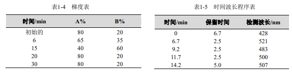 流動(dòng)相:A:0.02mol/L 乙酸銨溶液,B: 甲醇(梯度洗脫)