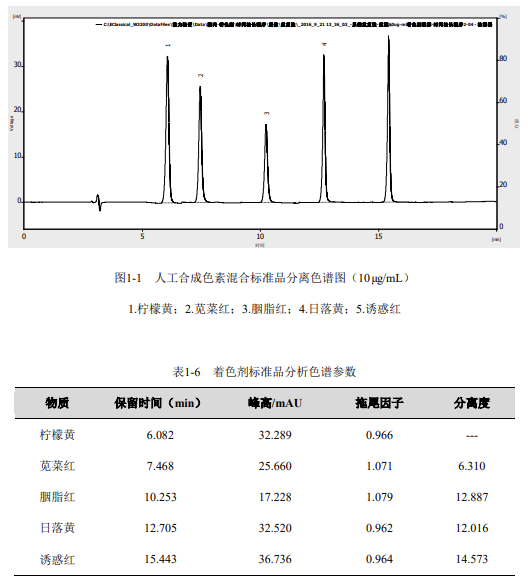 1.4.1 著色劑標(biāo)準(zhǔn)品分析結(jié)果