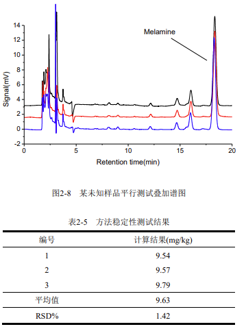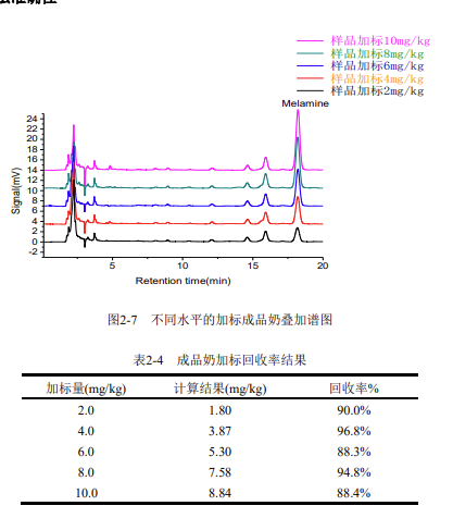 樣品測試過程中,應(yīng)保證其三聚氰胺含量在該線性范圍之內(nèi),若超出該范圍,需將樣品進一步稀釋或濃縮。