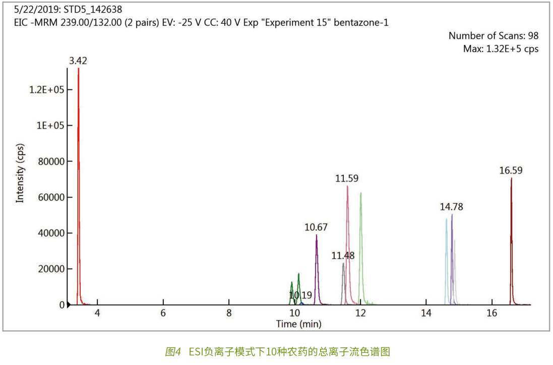 隨著現(xiàn)代農(nóng)業(yè)的發(fā)展,農(nóng)藥使用越來越普遍和頻繁。帶來高產(chǎn)的農(nóng)產(chǎn)品的同時,也給環(huán)境和人類的健康帶來負面的影響。由于抗藥性、農(nóng)藥價格和環(huán)保健康等因素,農(nóng)藥的使用越來越呈現(xiàn)多種農(nóng)藥聯(lián)合使用,不同季節(jié)輪換使用等新的方式,因此農(nóng)藥檢測就不僅只是局限于某種或者某類化合物,而是更廣泛的篩查各類農(nóng)藥殘留的可能性。在食品安全會議的議題上,農(nóng)藥殘留往往是大家先關注的,某些高附加值的經(jīng)濟作物如茶類更是需要嚴格監(jiān)控農(nóng)藥殘留的殘留狀況。近年,消費者越來越重視環(huán)境保護,消費者轉向關注農(nóng)藥使用與殘留量,無農(nóng)藥殘留的有機農(nóng)產(chǎn)品更是受到消費者的青睞。因此法規(guī)日趨嚴格并注重多種農(nóng)藥殘留的同時檢測。本文參照臺灣食品藥物管理署 TFDA 公告之食品中殘留農(nóng)藥檢驗方法 — 多重殘留分析方法 (五) 建立多重殘留農(nóng)藥之檢測方法,EClassical 3200L-MS2 Vertical 9100 液相質(zhì)譜聯(lián)用系統(tǒng)應用于農(nóng)產(chǎn)品中 203 種農(nóng)藥多殘留正負模式同時檢測 LC-MS/MS 分析方法。
