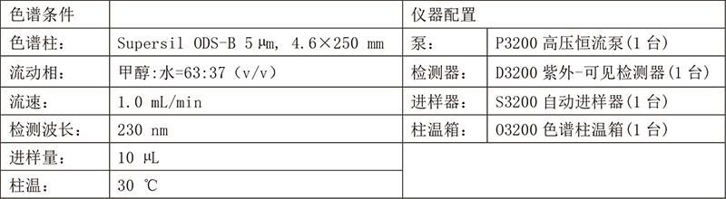 依利特新款的EClassical 3200液相色譜儀搭配經(jīng)典的Supersil ODS-B色譜柱,對(duì)三白草樣品進(jìn)行分析,峰型較好,分離度高,滿足定性定量分析的需求。