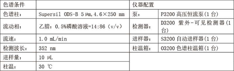 利特新款的EClassical 3200液相色譜儀搭配經(jīng)典的Supersil ODS-B色譜柱,對(duì)萹蓄樣品進(jìn)行分析,峰型較好,分離度較好,滿足定性定量分析的需求。