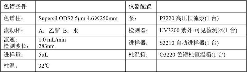 使用EClassical 3200高效液相色譜儀配Supersil ODS2色譜柱分析橙皮苷樣品,目標物峰形良好,柱效高,滿足定性定量分析的需求。
