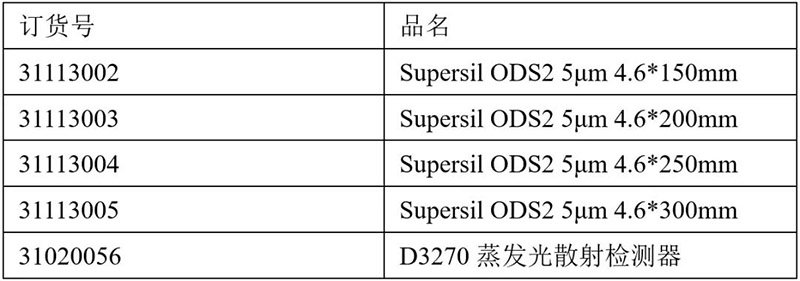 銀杏葉為銀杏科植物銀杏的葉片,含有大量的銀杏黃酮和萜類內(nèi)脂,是一種具有很高藥用價(jià)值的植物。銀杏葉具有斂肺,平喘,活血化瘀,止痛的功效。銀杏葉中的萜類內(nèi)酯對(duì)血小板活化因子(PAF)受體有強(qiáng)大的特異性抑制作用,被認(rèn)為是有臨床應(yīng)用前景的天然PAF受體拮抗劑。依利特用新推出的D3270蒸發(fā)光散射檢測器匹配熱銷的Supersil ODS2色譜柱,對(duì)銀杏葉中萜類內(nèi)酯的含量進(jìn)行分析檢測。