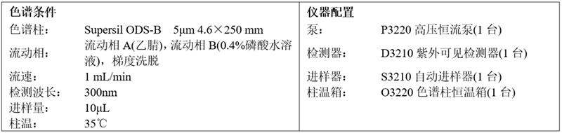 由此可見(jiàn),使用依利特EClassical 3200高效液相色譜儀以及Supersil ODS-B色譜柱,測(cè)得的枇杷葉配方顆粒的特征圖譜滿(mǎn)足藥典要求。
